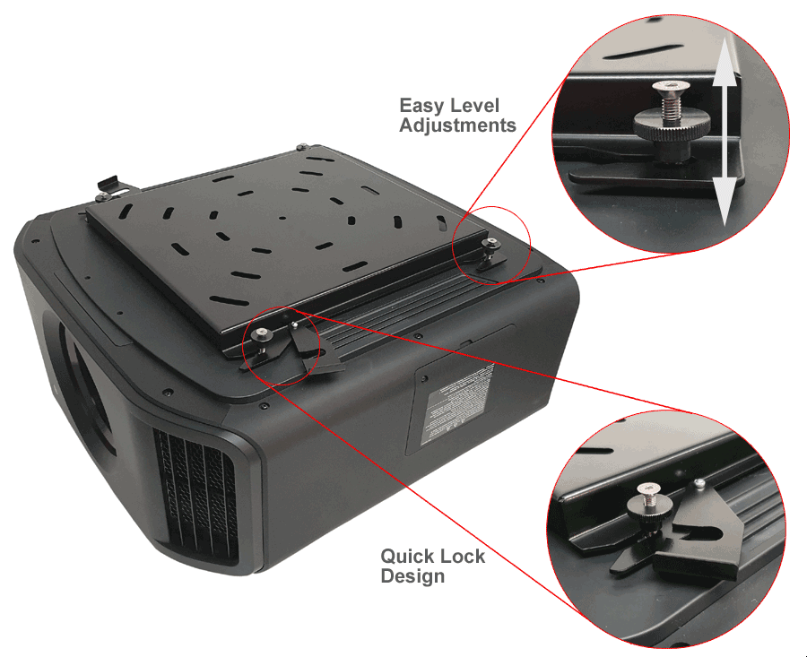 Максимальный вес до 30 кг , макс. размер проектора 570 х 600 х 275 мм (Ш х Г х В). Низкопрофильный ультратонкий кронштейн для проектора предназначен для установки на расстоянии 25 мм от потолка.