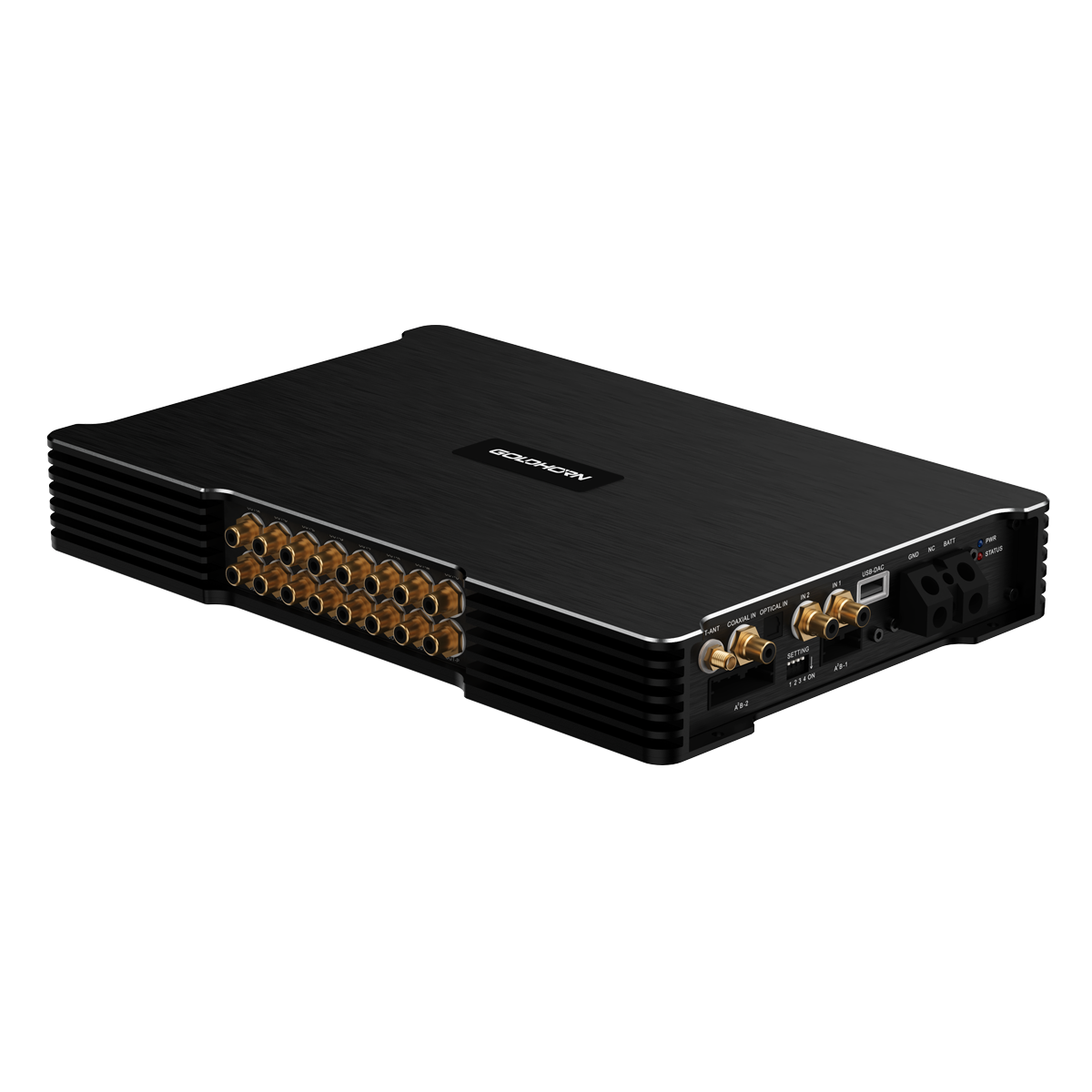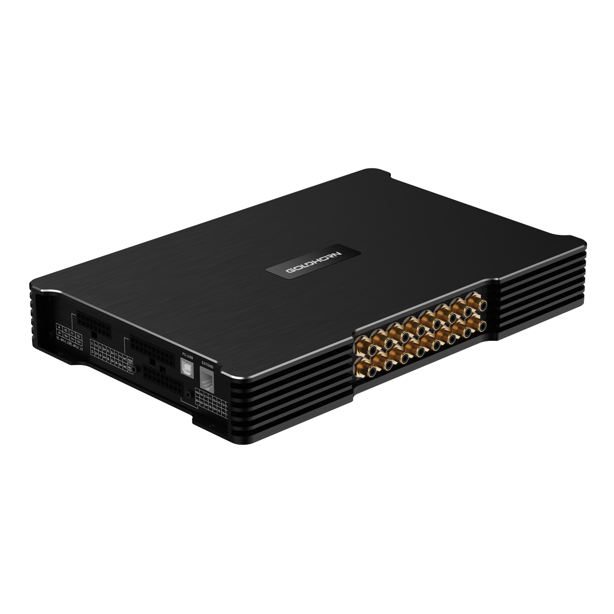 Повысьте качество звука в своем современном автомобиле с помощью передового процессорного усилителя GOLDHORN AB 218 v1.3 c цифровой шиной A²B.