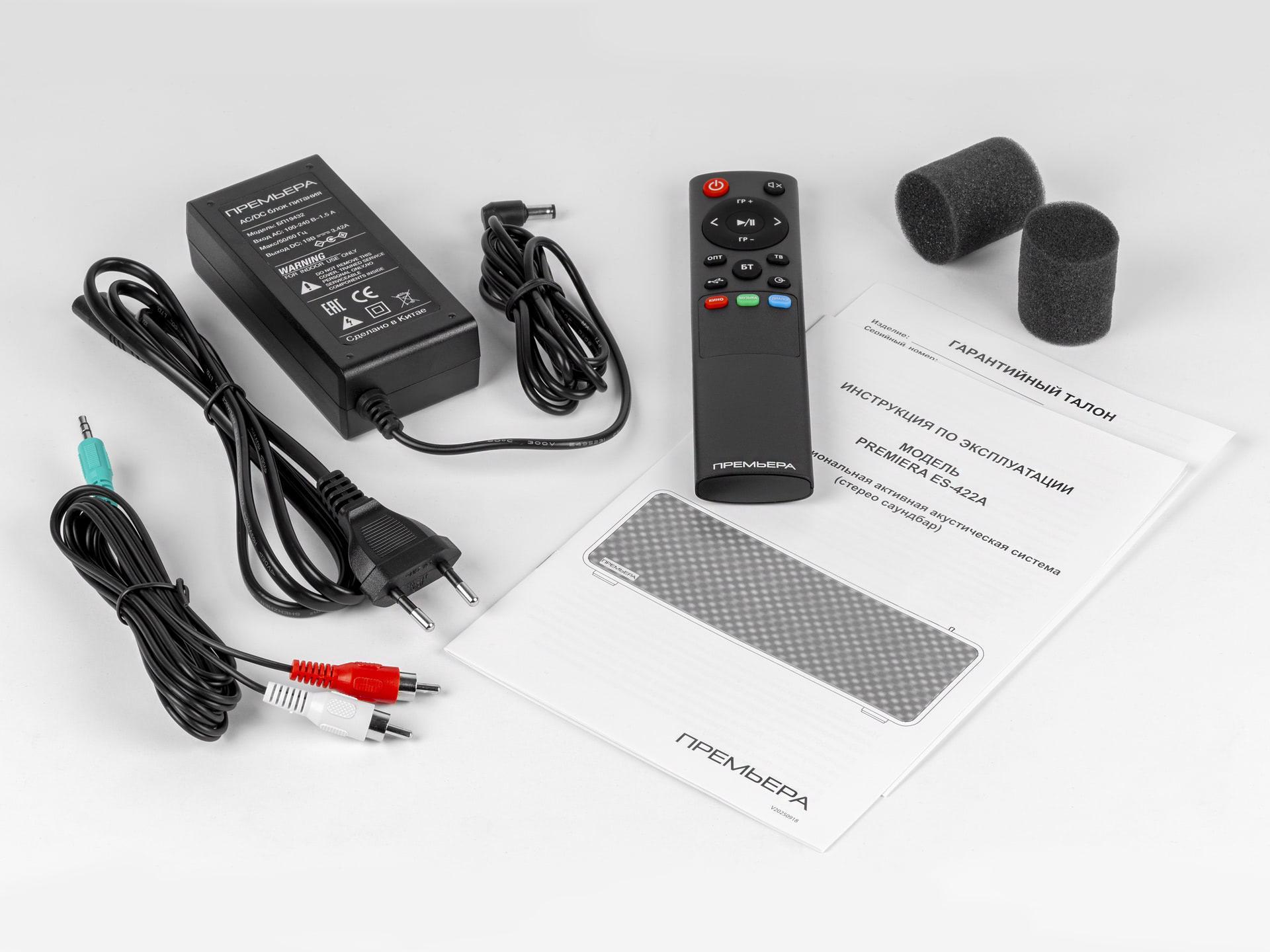 Premiera ES-422A – многофункциональная активная стерео акустическая система (саундбар), с общей номинальной мощностью 40 Вт и предназначена для использования в домашних теле-аудиосистемах, которую можно использовать как полноценный аудиокомплект.