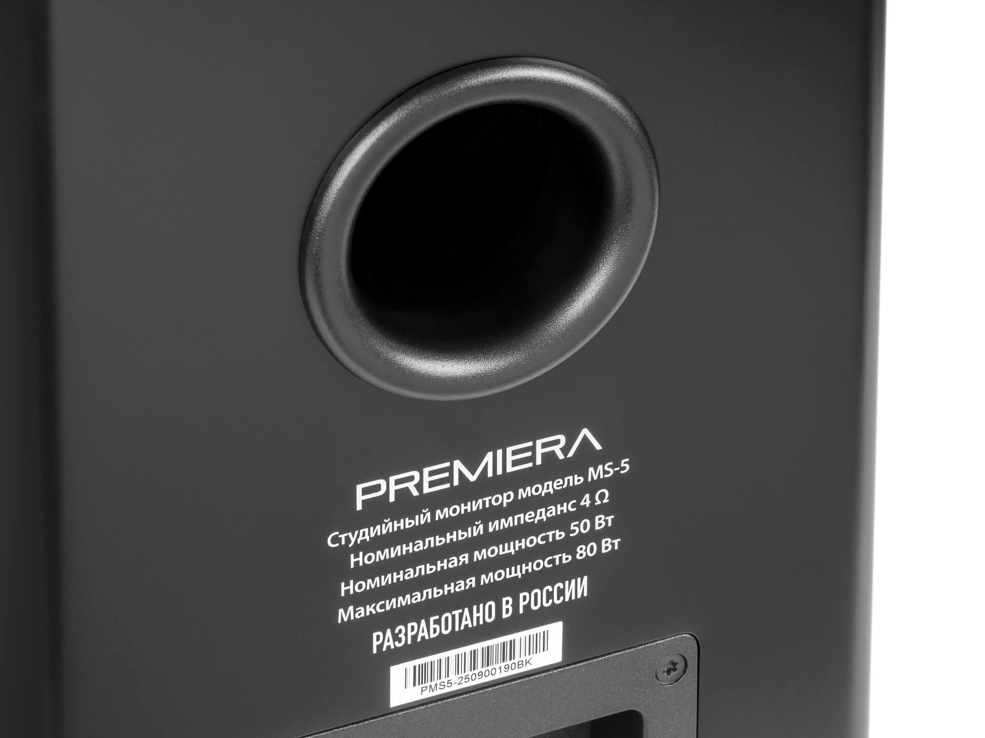 Premiera MS-5 «Studio 5» - полочные профессиональные акустические системы мониторного класса с феноменальной равномерностью звучания практически во всём диапазоне громкости. «Studio 5» предназначенные для использования в студиях звукозаписи, в качественных Hi-Fi-стереосистемах и в многоканальных системах домашнего кинотеатра любых конфигураций.