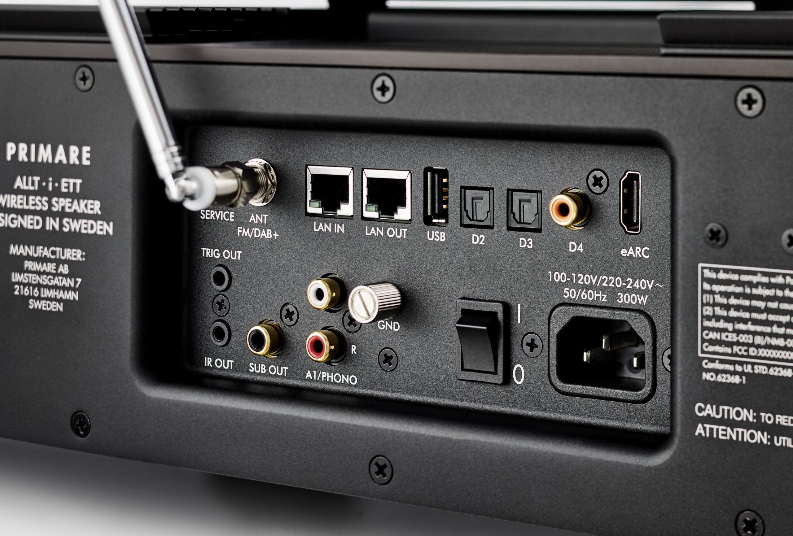 Primare Allt-i-Ett предлагает множество интерфейсов, будь то аналоговый или цифровой сигнал, потоковая передача или передача с локальных носителей: HDMI, конечно же, с eARC и HDMI CEC для подключения телевизоров, оптический и коаксиальный цифровые входы, USB, аналоговый вход с предусилителем-фонокорректором, а также сетевую интеграцию через интерфейс RJ45 Ethernet или Wi-Fi. Стриминг основан на платформе Primare Prisma и, следовательно, в первую очередь, использует потоковые технологии UPnP, Apple AirPlay 2, TIDAL Connect, Qobuz Connect и Spotify Connect. Также стоит отметить поддержку радио во всех форматах, от FM до DAB+ и интернет-радио. Любимые станции можно слушать в любое время с помощью предустановок.