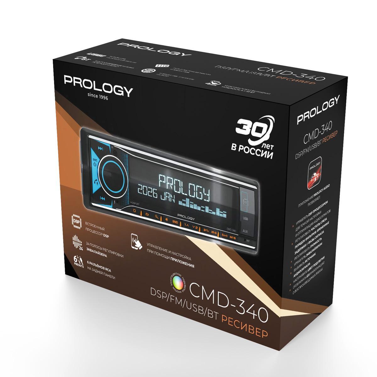 PROLOGY CMD-340 — FM / USB ресивер с Bluetooth® и встроенным DSP - аудиопроцессором, стандартного размера 1DIN, который обеспечивает прием радиостанций в диапазонах FM / УКВ / AM и воспроизведение медиафайлов MP3, WAV, и FLAC форматов, записанных на USB накопители, передачу звука с внешних источников через линейный аудиовход и беспроводной интерфейс Bluetooth®. Поддерживается управление мобильным телефоном через интерфейс Bluetooth® (ver. 4,2).