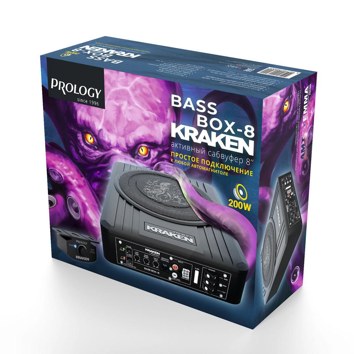 PROLOGY KRAKEN BASS BOX-8 — автомобильный активный сабвуфер под сиденье. Диаметр встроенного динамика 200 мм (8"), максимальная мощность 200 Вт.