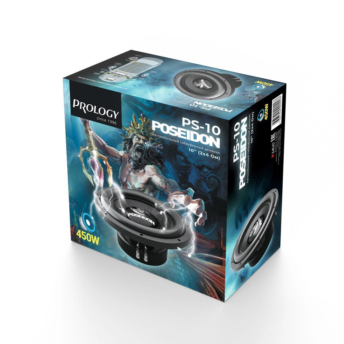 PROLOGY PS-10 POSEIDON — автомобильный сабвуферный динамик 250 мм (10") с двойной звуковой катушкой, мощность 250 Вт (RMS), 2х4 Ом.